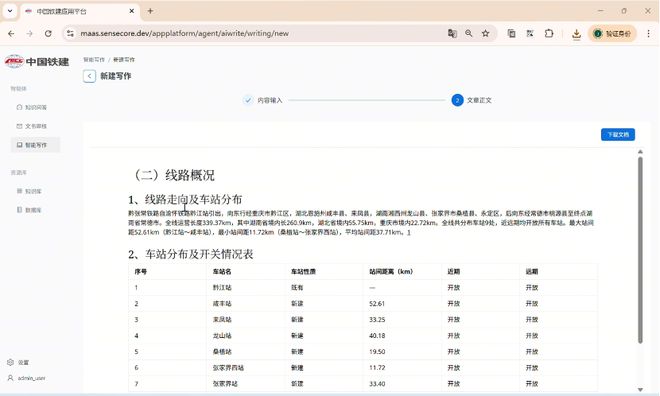 对于报告辅助编写,该平台可以帮助技术人员搭建报告框架、草稿,为了解决大模型一次性吞吐量限制,其还会分框架填充章节内容,分段生成文本。